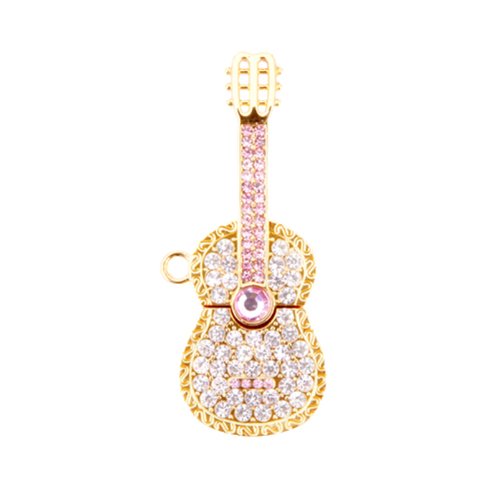 While you can't make any music with this small guitar, it can store your music for you! It can also store your files and images so you can take them with you wherever you need. This beautifully gemmed guitar flash drive will look great on your keychain, and no one will even notice it's a flash drive if you don't want them to because the flash drive is hidden within the body of the guitar.